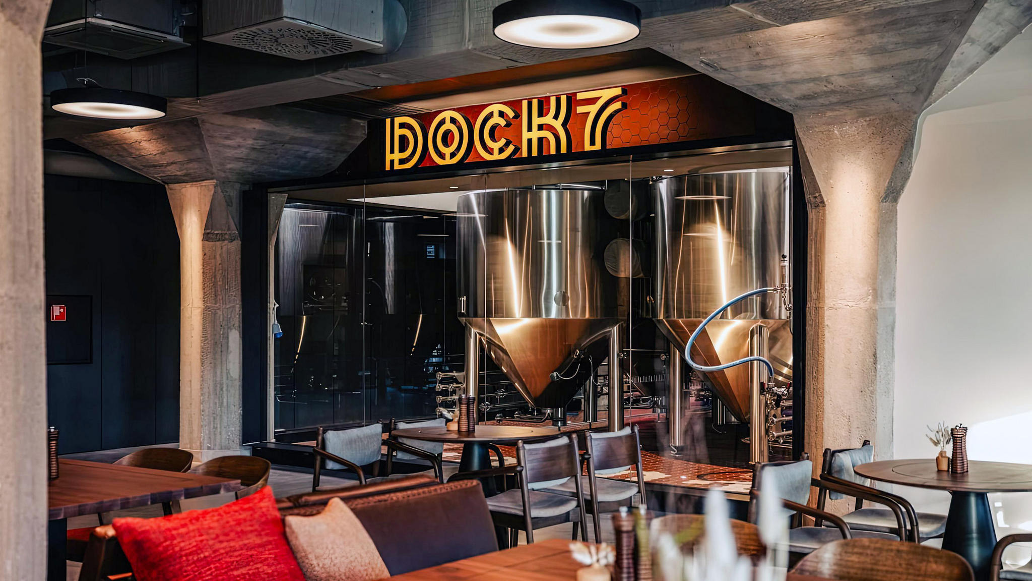 The newly opened DOCK7, nestled in a meticulously restored former warehouse along the scenic banks of the Danube in Bratislava, Slovakia, has quickly gained popularity for its distinctive ambiance, exceptional cuisine, and locally brewed beer. The venue’s modern design seamlessly integrates with its industrial heritage, resulting in a stylish, welcoming, loft-inspired setting.