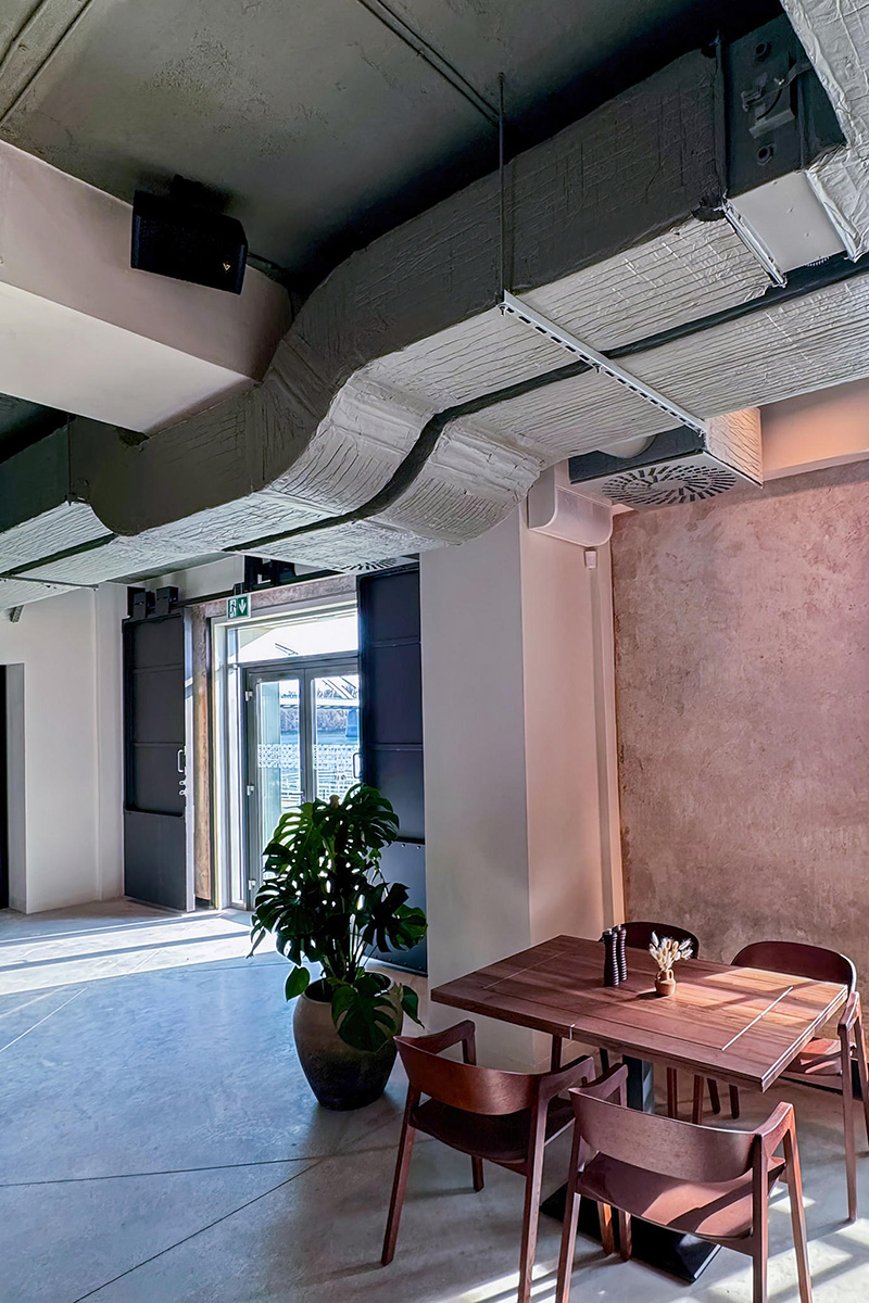 Seeking to enhance this unique atmosphere with impeccable audio that enriches the experience without distraction, the DOCK7 owners turned to Slovakian integration specialists OPTIO s.r.o., led by project manager Michal Kubinec. Using advanced acoustic modeling through EASE 5 software, the team ensured consistent sound coverage throughout the venue while preserving the integrity of its design.