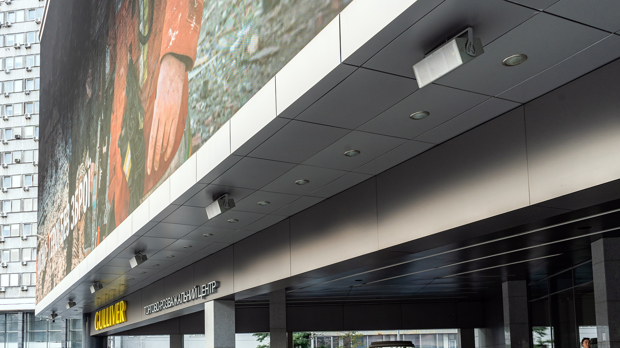 In March 2021, Europe’s largest LED Screen application (total area of about 4 thousand square meters) was installed on the facade of the Gulliver shopping center. The entire LED configuration is designed to broadcast advertising and entertainment content, all in a high-resolution video quality.