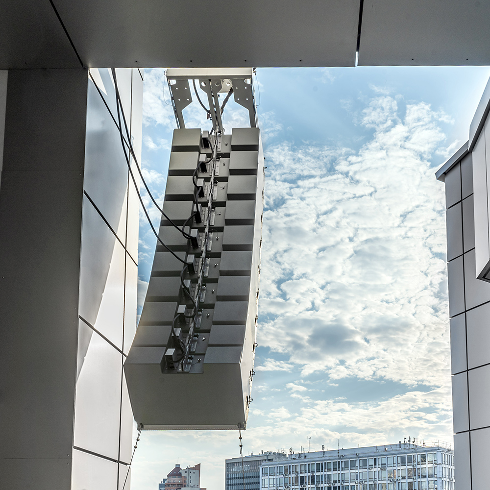 Needless to say, is that such a monstrous giant LED screen definitely needs an appropriate sound system to match. After performing the required acoustic calculations, it became very clear that the most suitable would be the use of a line array audio system. Such a system thoroughly covers the entire square including the space around the fountain in the center of the square and delivers a high-quality, intelligible, and crisp sound. Additionally, point source speaker systems were spec to be used for the near zone.