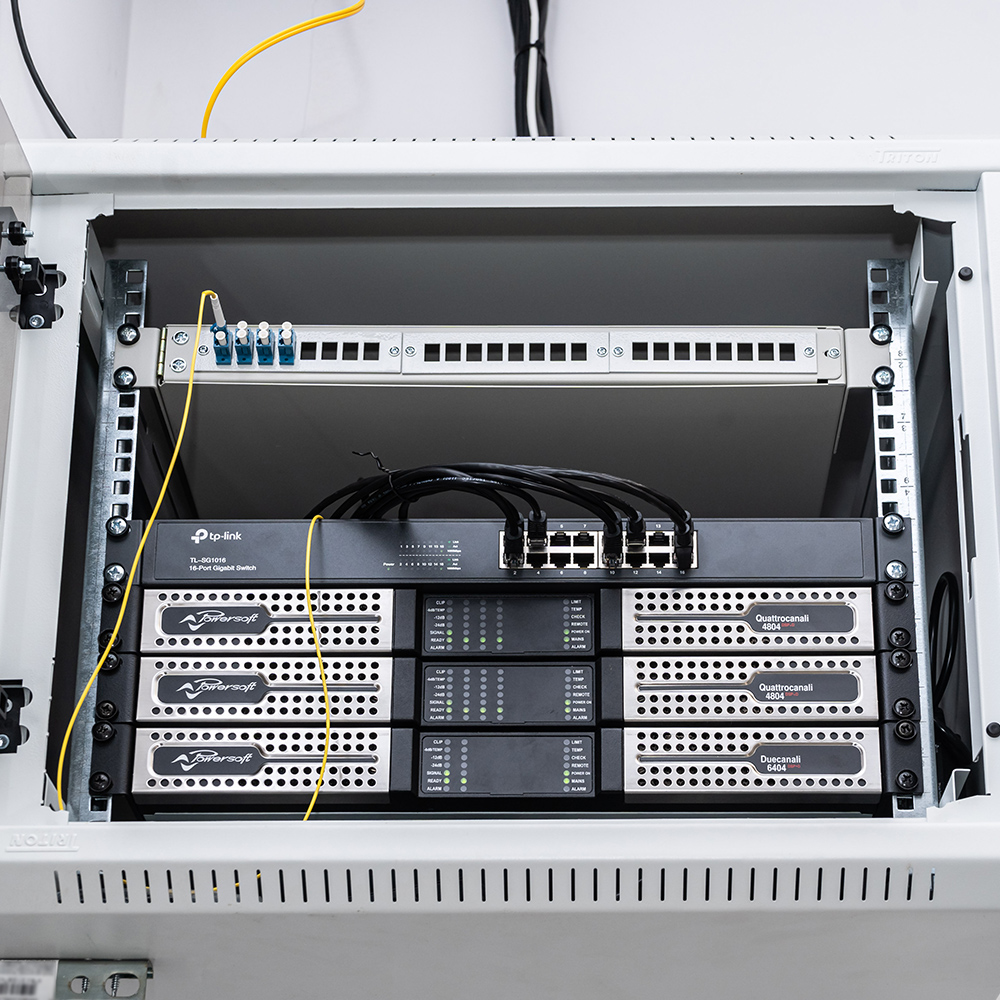 The entire installation – involving professional industrial climbers to perform the rigging of all the sound equipment – was successfully carried out according to all the safety regulations.