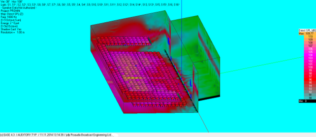 In the preliminary stage of designing the installation, the choice fell on the MAG Hornet 12 line array. To calculate all the acoustic features of the room and consider if the chosen system fits them, first of all, we’ve created a 3D model of the hall with the help of EASE 4.3. software.
