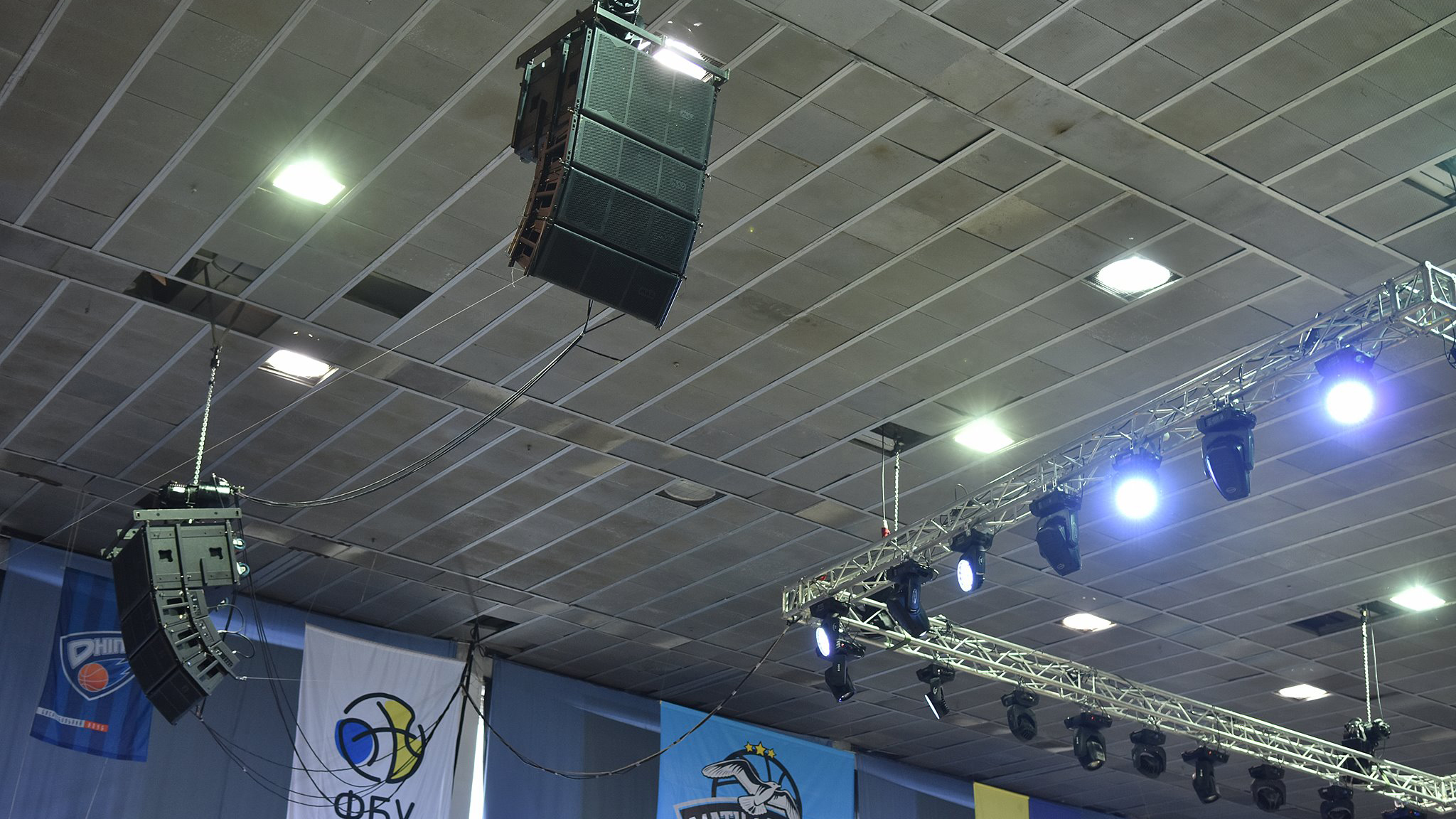 The all-stars basketball game was held in Mykolayiv (Ukraine) — the meet of the best players of the Ukrainian basketball league. It’s a friendly match, therefore not only is it a competition, but a show aimed to inspire the viewers and, thus, popularize sport among the masses. So the sound, forming part of the general atmosphere, is important here not only for the players, as a driving force but for the viewers as well.