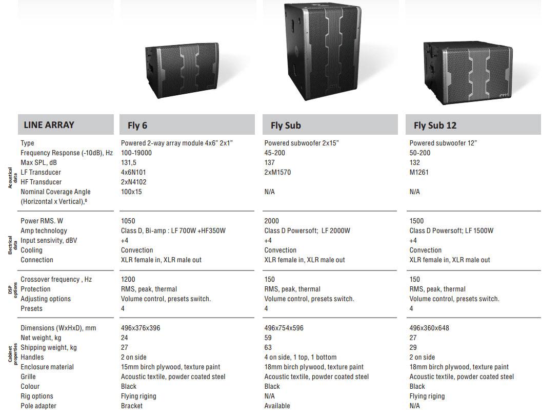 Fly 6 is recommended to use with Fly series subwoofers: single 12-inch powered and double 15-inch- 2000w powered subwoofers…