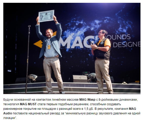 In the LightSoundJournal — the first and the biggest multilingual network for professional light and sound equipment — has been posted another review of the innovative technology MAG MUST, based on the compact line array WASP. At this moment, the online journal has editorial teams in such countries: USA/UK, France, Spain, Italy, Germany, Russia.