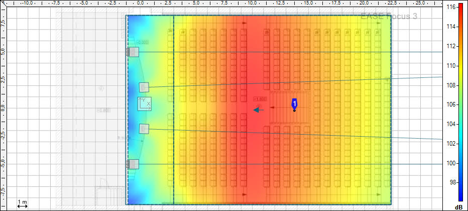 We have chosen line array MAG Wasp for this place (6 clusters for each side, to be exact). A compact but powerful system provides fair sound coverage of the hall. The results of computer simulations of the line array showed that in the current conditions, MAG Wasp guaranteed equal distribution of sound waves.