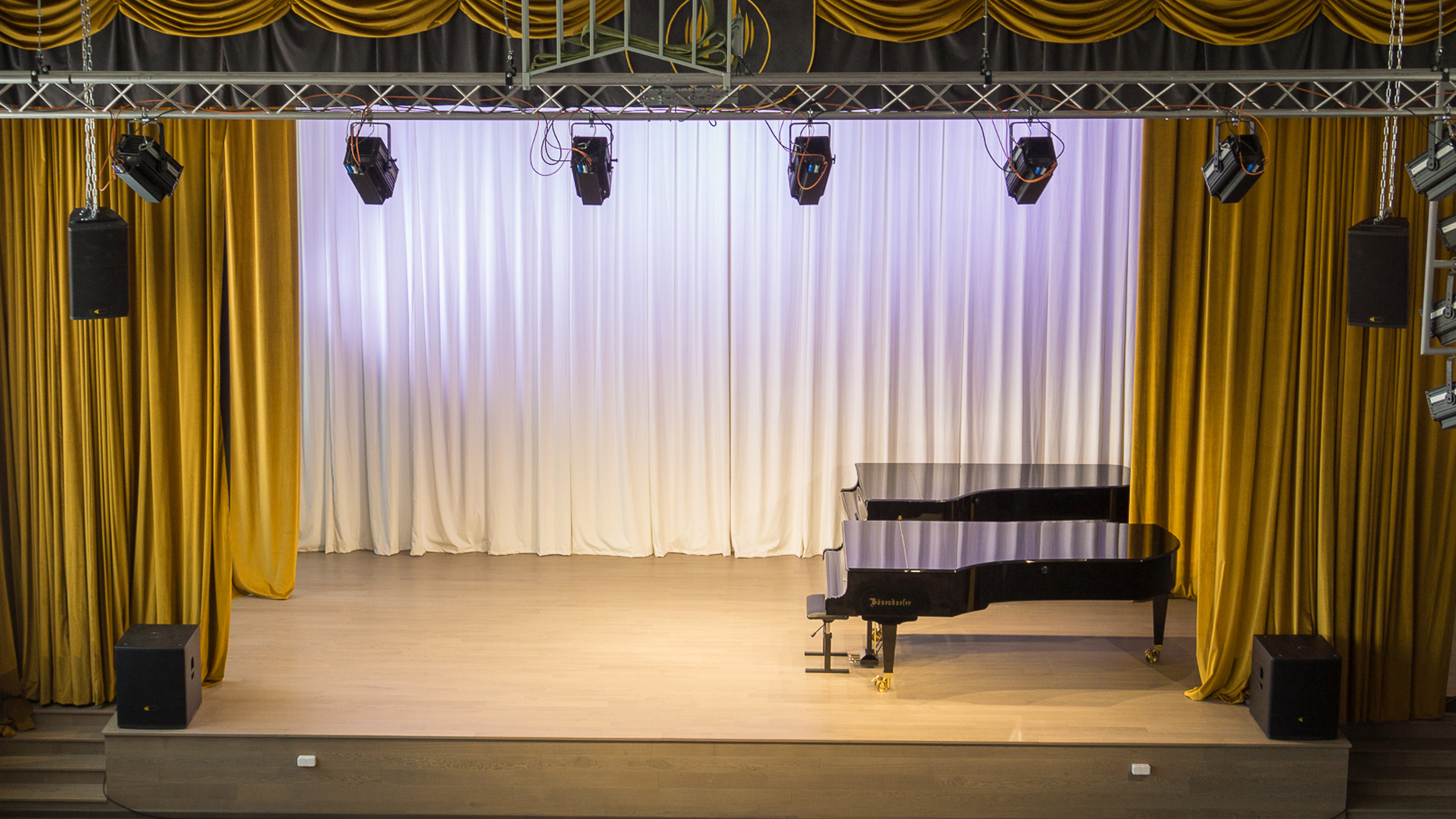 The gymnasium-college has a lot more room for creativity now — it has a new choir hall, classes for individual lessons, and its own recording studio. But a real highlight of the college is the renovated concert hall that once hosted the performances of the legendary pianist Svyatoslav Richter, Grammy winner Yuri Bashmet, and French pop diva Patricia Kaas. This concert hall is now equipped with MAG Audio acoustic systems.