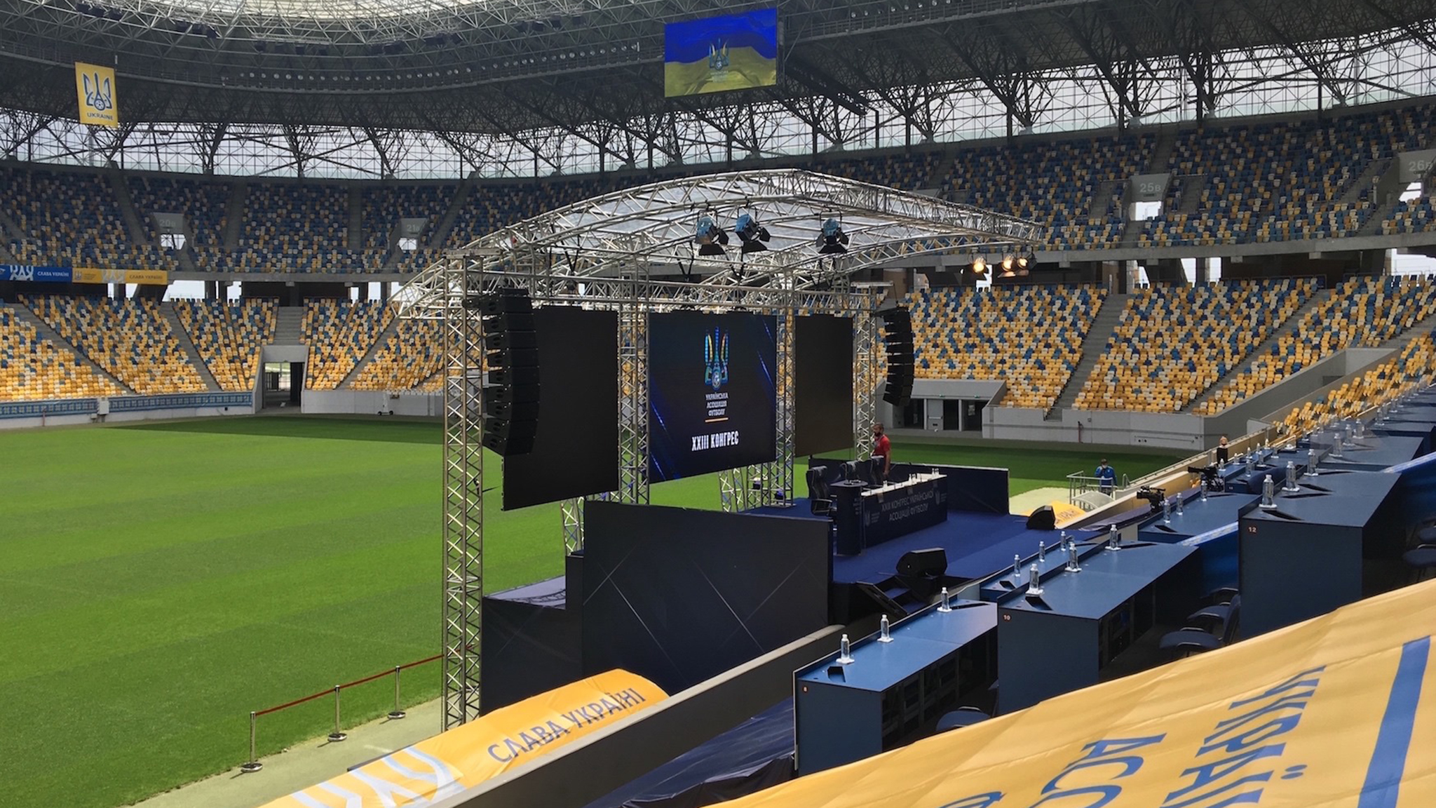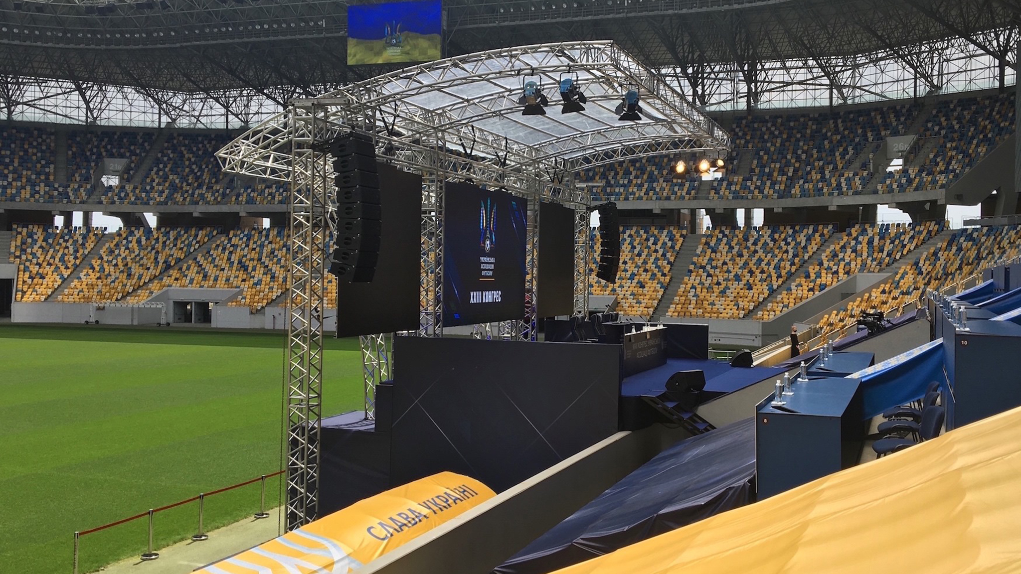 On June 7th, the city of Lviv in Ukraine welcomed the XXIII Congress of the Ukrainian Association of Football. The significant football event took place at the main stadium of Western Ukraine — Arena Lviv, which hosted matches for Euro 2012. The specially built stage was equipped with the MAG Audio loudspeakers.
