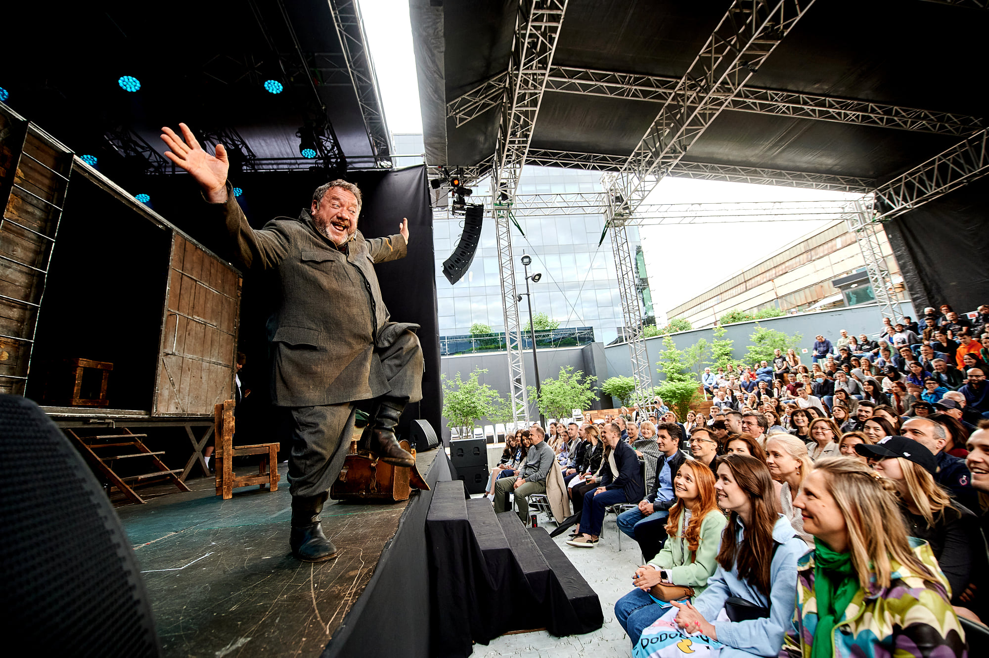 Every evening the open-air theater at Unit. The city gathered a full auditorium. Such stars of Ukrainian theater as Bohdan Beniuk, Olesia Zhurakivska, Anatolii Khostikoev, Mykhailo Shchur, Yaroslava Kravchenko, and others played on stage at the festival.