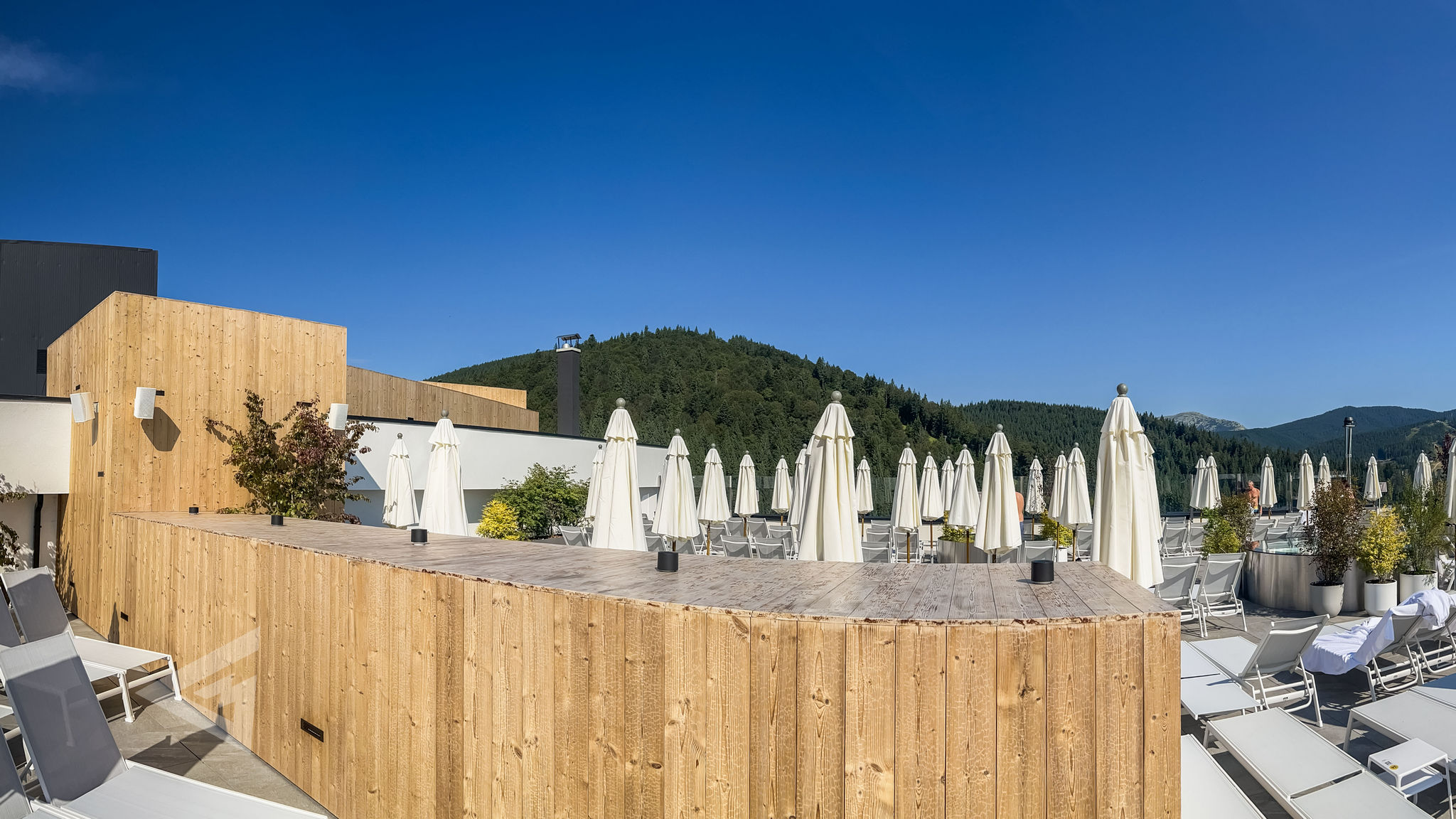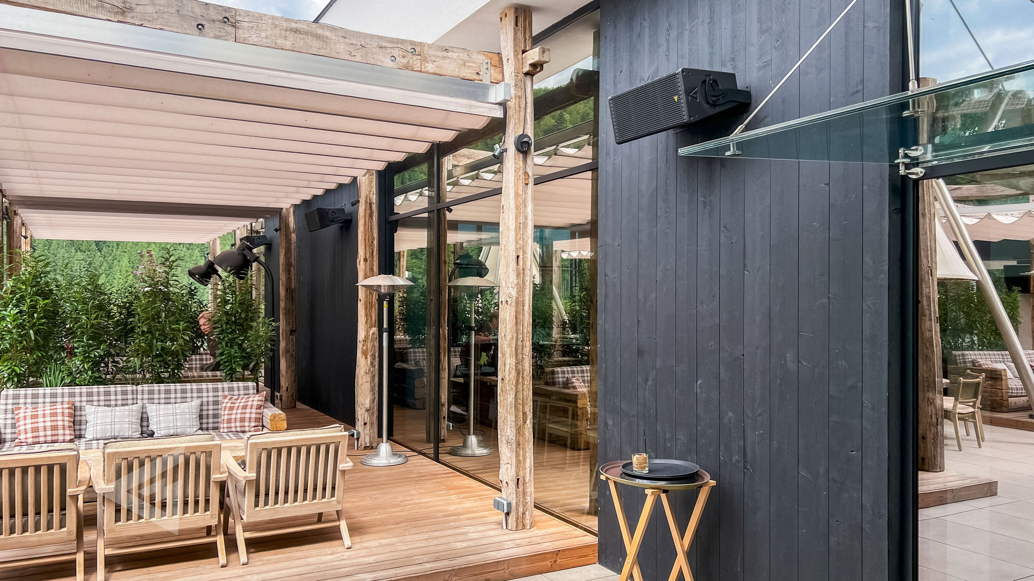 In total, 130 MAG Audio loudspeakers were installed throughout Mountain Residence. The core of the system is built on the AIR-C series, providing seamless background coverage across every corner of the resort — from lobbies and restaurants to spa zones and outdoor terraces. To elevate nightlife and special events, a dedicated DJ setup was deployed, combining powerful MAG Audio Sting point-source systems with thunderous dual-18″ Sub-28 subwoofers in the open-air bar.